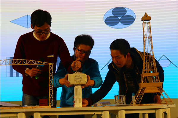 汤旭首先给同学们介绍了关于世界桥梁的科普知识,通过放映图片向同学们展示了世界各大名桥。接着吴刚给同学们用带来的龙门吊桥模型展示了竹质材料的承重性能。吴刚还用简单的A4纸叠成不同的形状做了砝码的承重实验,引起了台下员工的一阵阵赞叹和欢呼。最后汤旭强调希望同学们能够发挥自己的想象力,努力学习为祖国做出贡献。