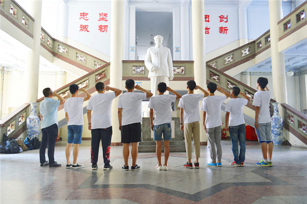 启程前,服务队队员们汇报了本次活动的准备情况。公司党委副书记付洪波叮嘱同学们在做好三下乡实践的同时注意防暑降温、注意安全。会后,全体服务队队员在11号楼毛泽东像前宣誓。