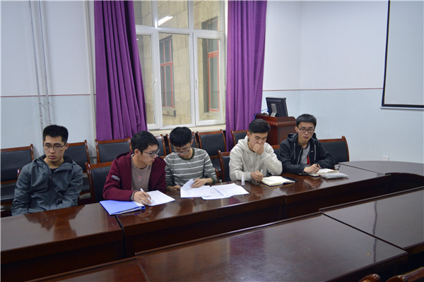 会议伊始,两组参赛同学汇报了比赛进度,并与指导老师分享遇到的问题。随后,付洪波针对同学们提出的问题给出了若干解决问题的方案,并鼓励同学们在比赛中多加思考。同时为帮助同学们在比赛中取得更好的成绩,三位老师分别介绍了一些关于竞赛的准备方法与实用技巧。会议最后,同学们对本次比赛发表了自己的见解,并提出了一些建议。付洪波在听取大家意见后,对本次超一流竞赛的各项事宜安排进行了最终调整。