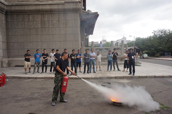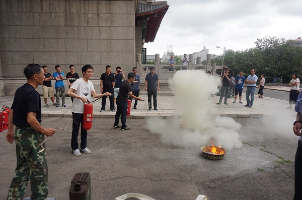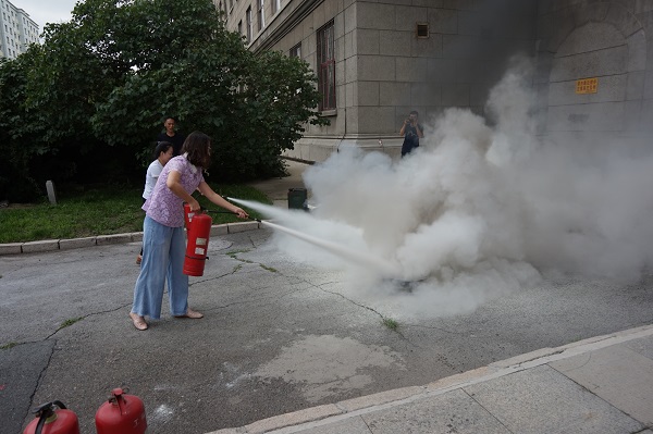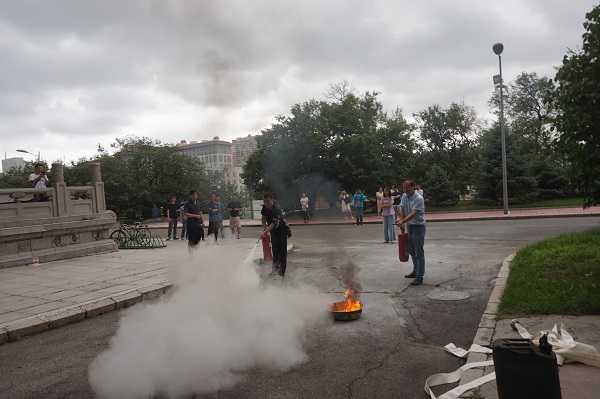 哈尔滨百家安消防宣教中心的史玉玺主任进行火灾案例重放和灭火器材现场演示。