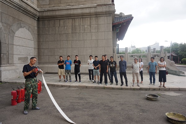 安全保卫处黄国庆老师,魏俊华老师为学院师生进行灭火器材使用实战演练讲解。