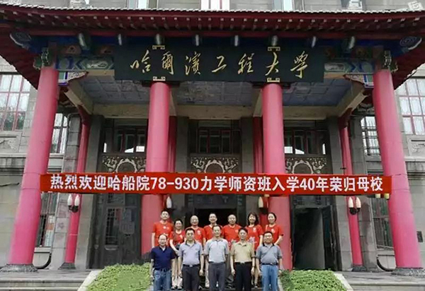 2018年7月21日,哈船院78-930力学团队班入学40年荣归母校。下午3:00整,七位员工与学院领导和老师在11号楼门前进行了合影留念。随后,在学院3067会议室与学院领导进行了亲切交流。